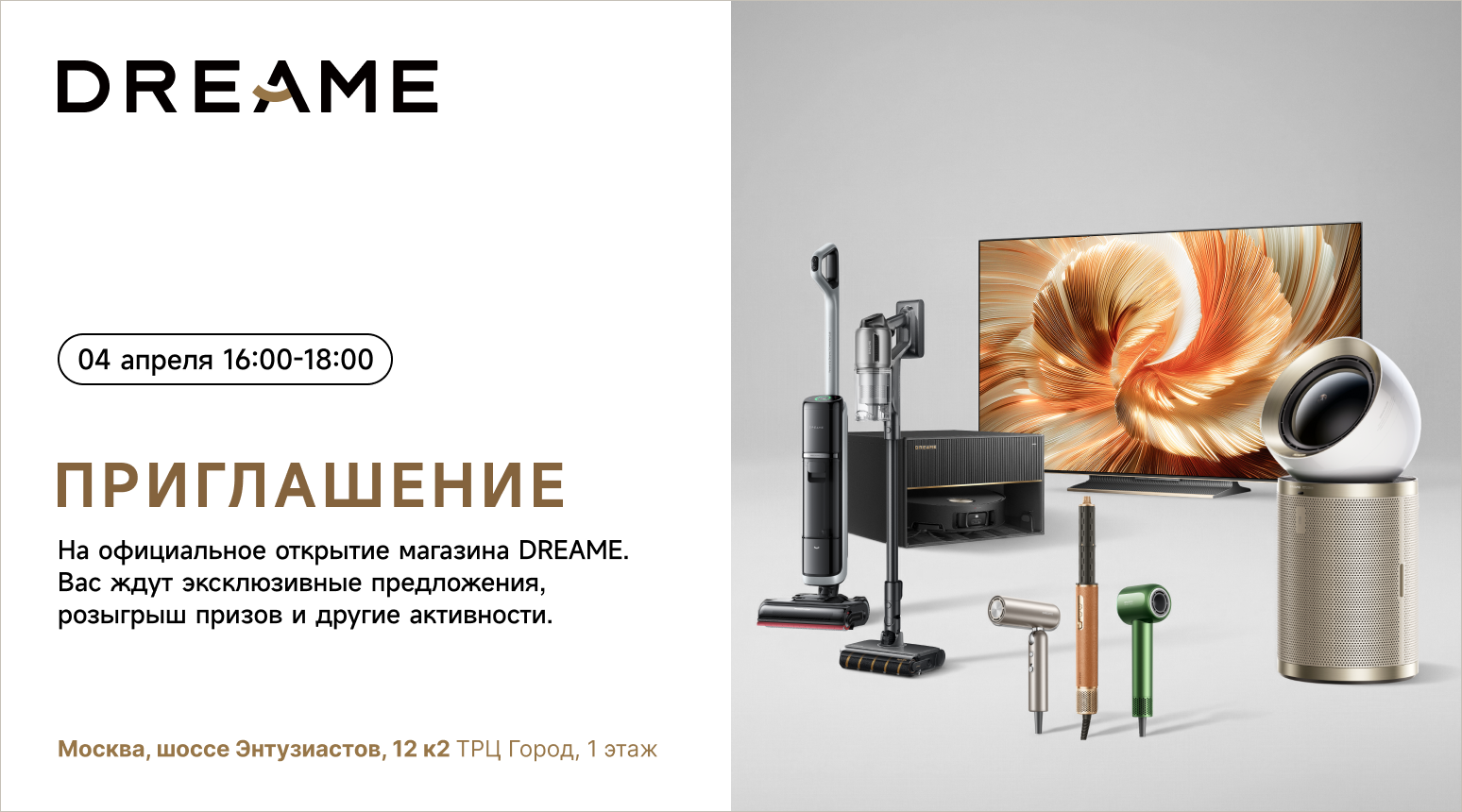 Спешим сообщить, что скоро вас ждёт очередное официальное мероприятие, посвященное открытию самого большого фирменного магазина Dreame в ТРЦ Город в Лефортово, в Москве!